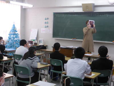 ベサニさんは、自分が小さな頃の写真や兄弟の写真などを用意して、Xmasの想い出を英語で話してくれました。