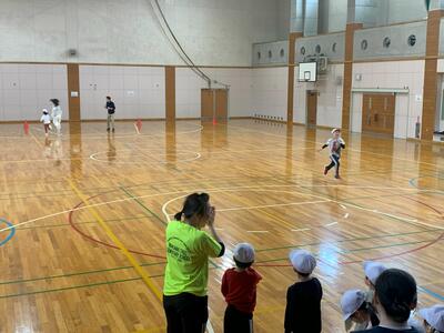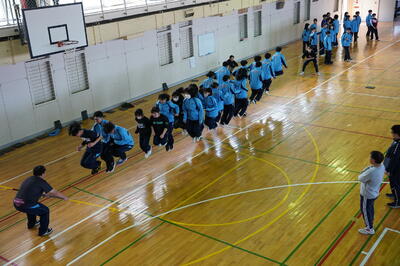 ここ数年、小中連携で本校の保体教員が小学校で授業を行なっています。小学校の皆さんからは「教えてもらってタイムも走り方も良くなるんですよ!」と言ってくれます。義務教育学校を見据えた取組もできるところから楽しく!がモットーの北地区です。これからも北地区の子どもたちのために力合わせを大切にがんばります。