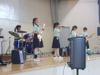 音楽部引退ライブが終わりました。直前の2回の練習が中止となり、仕上げに不安の残る状況でもあり、「お腹痛―い!」「緊張して寝れなかった。」等など、不安を口にする部員も多い中、みんなベストパフォーマンスを披露することができたと思います。1年生は楽器初心者も多い中、1曲を最後まで演奏することが出来ました。2年生は納会の準備と練習の両立をしっかり行ってくれました。そして3年生は2年半の時間の積み重ねを証明する成熟したパフォーマンスでした。何より、26人全員でステージに立てたことが一番の成果だったと思います。来場された観客の皆さんありがとうございました。