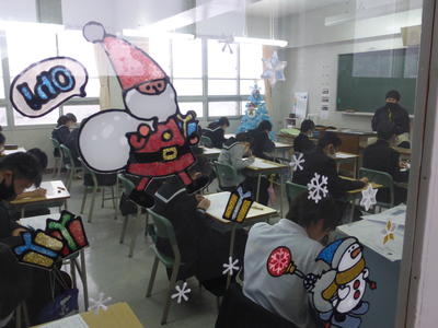 1年部会の先生が提案し、生徒たちといっしょに飾り付けをしたそうです。