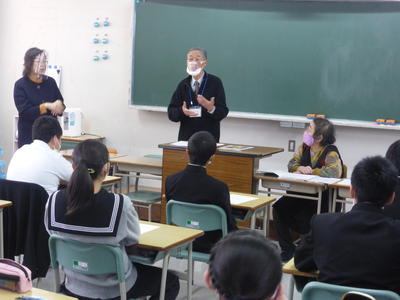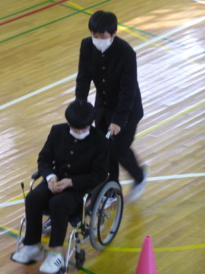 2年生は、介護体験授業と題して「高齢者体験」や「車椅子体験」などを行い、