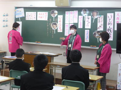 その後、人権教室と題して「いじめとの戦い」について学びました。