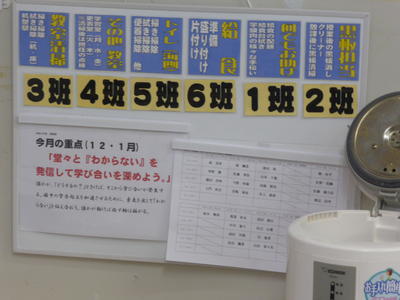 教室には、班の役割表と