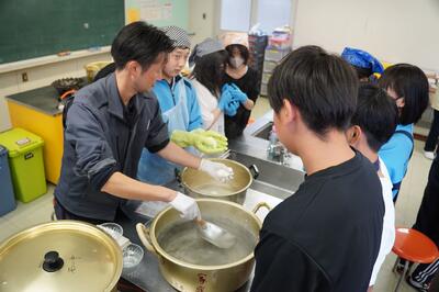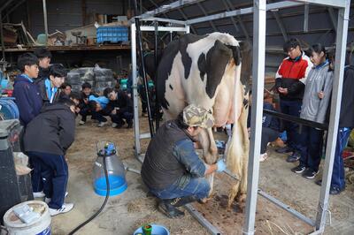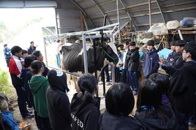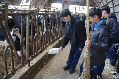 そして、10月8日(水)酪農体験。あんなに間近で牛を見るのは初めて…という生徒も多かったはず。迫力満点でした。搾乳の様子を見せていただいたり、実際に餌や牧草を与える作業もやらせていただきました!