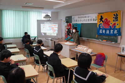 これまでの3年生が残してくれた財産を受け継ぎ、頑張っていこうと決意した総務でした。後期は2年生が生徒会の中心になりますが、各学年からの意見、質問、要望に丁寧に答え、新生徒会のdebutにしては素晴らしい生徒総会だったと思います。最後に校長先生から、「新しい稚内中学校を目指して~さあ、ここから始まる未来!~」と題して、各学年へ期待する「漢字一文字」が伝えられました。みなさんはこの「漢字一文字」を聞き、何をどのように感じたのか、一人ひとりの行動が問われますね。まずは3月まで力あわせですね!