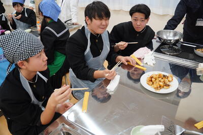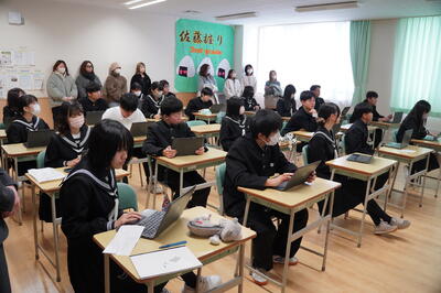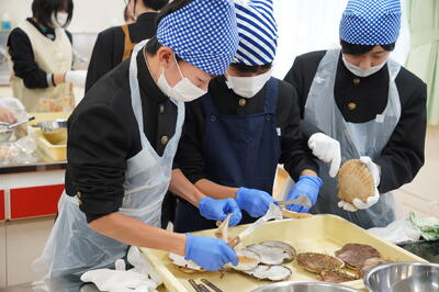 本日2年生の技術・家庭科(家庭分野)で、出前授業が行われました。5時間目はホタテ漁の座学。6時間目は調理実習で殻から身を取り出し、ソテーをつくりました。宗谷総合振興局産業振興部水産課職員の皆様をはじめ、宗谷地区水産技術普及指導所、稚内市建設産業部水産商工課、稚内漁協、宗谷漁協所属漁業士の皆様、本日はたいへんお世話になりました。ありがとうございました。